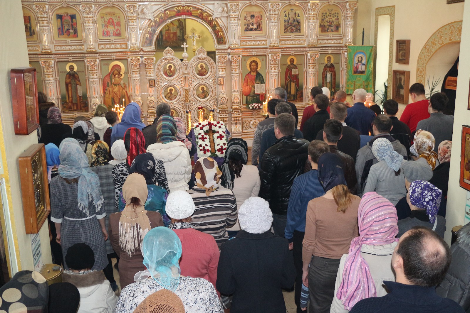 Третья Неделя Великого поста посвящена поклонению Честному и Животворящему Кресту. Крест Христов есть знамение победы и славы, он неразрывно связан с Воскресением и утешает нас упованием и надеждой, укрепляет в подвигах Великого поста. Праздничное Богослужение Крестопоклонной недели возглавил настоятель храма иерей Сергий, который и вынес Крест из алтаря на середину храма после чего совершалось троекратное поклонение Кресту с пением «Кресту Твоему поклоняемся, Владыко и святой Воскресение Твое славим» и особых стихир.