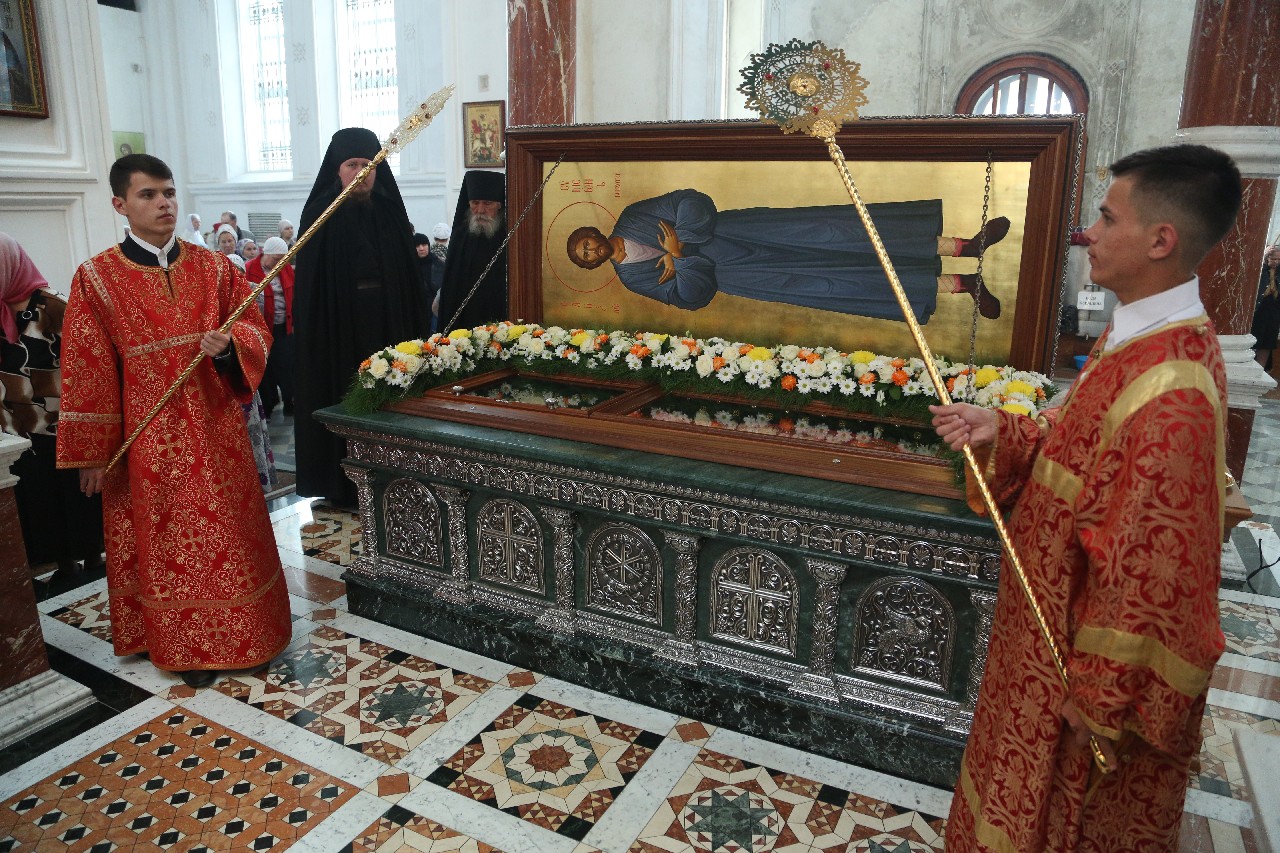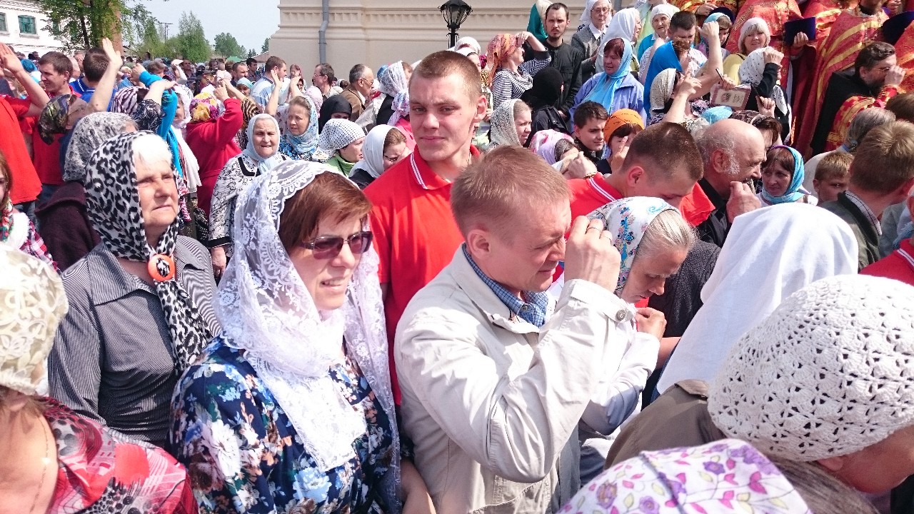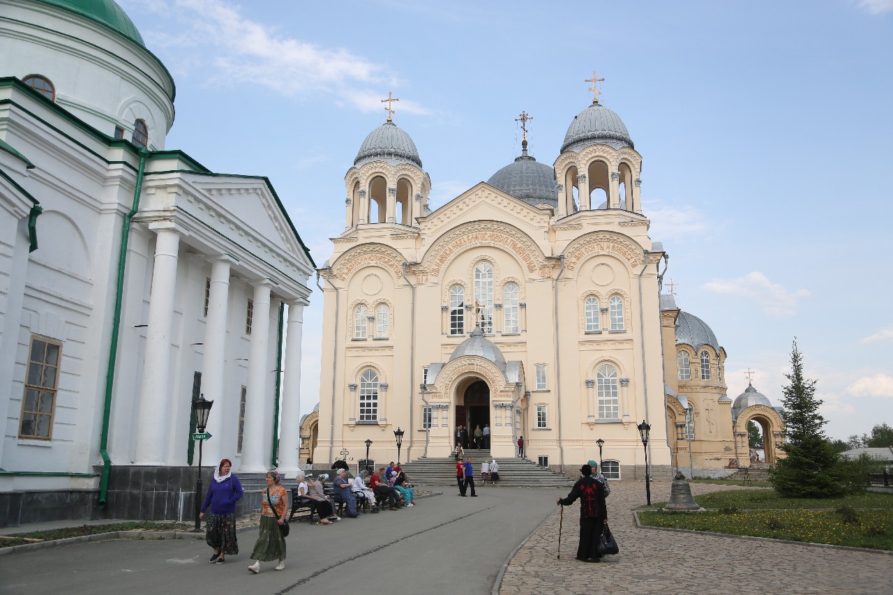 По прибытии на территорию монастыря наша группа примкнула к многочисленным паломникам, желающим в этот день помолиться и поклониться мощам святого праведного Симеона Верхотурского, которые были возвращены в эту святую обитель в 1992 году.