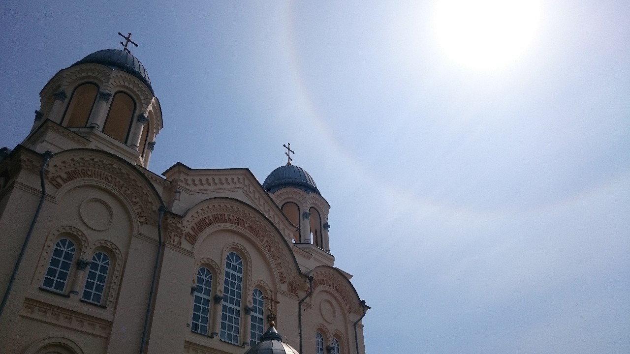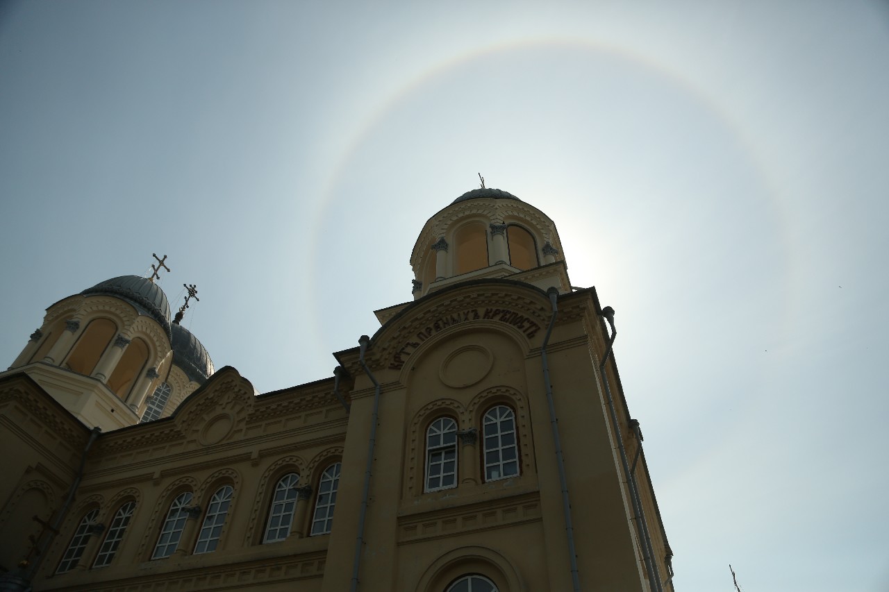 Все присутствующие в этот день наблюдали в небе над храмом необычное явление гало — нимб вокруг солнца, некоторые со слезами на глазах радовались, принимая увиденное за явленный Божий знак.
