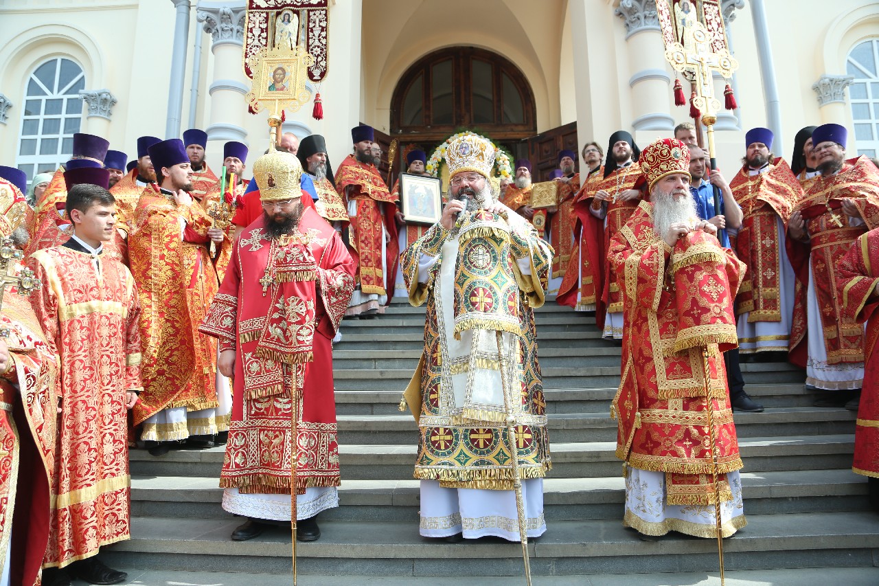 После принятия Святых Христовых Таин все верующие торжественно и с молитвенным пением прошли крестным ходом вокруг собора.