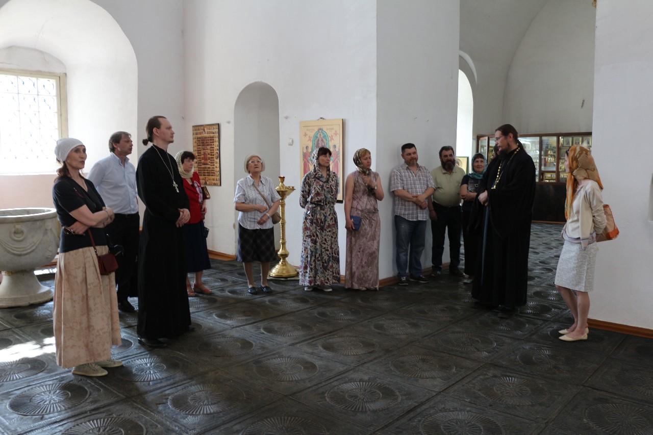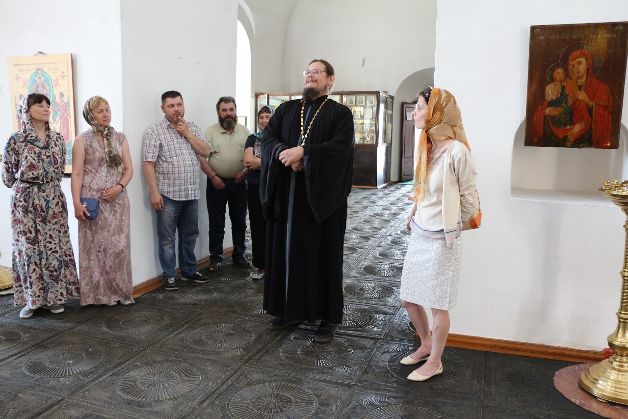 После праздничного богослужения состоялась экскурсия в Свято-Троицкий собор, где настоятель отец Виктор Титов интересно рассказал о значении Верхотурского Кремля, храма и самого города, как значимого духовного центра. Все желающие поднялись на колокольню, откуда смогли полюбоваться великолепным видом на реку Туру и панораму г. Верхотурья.