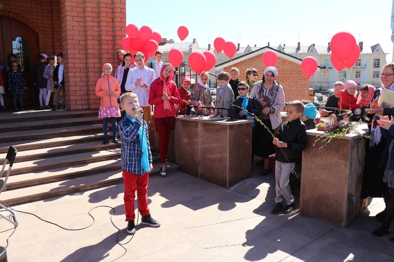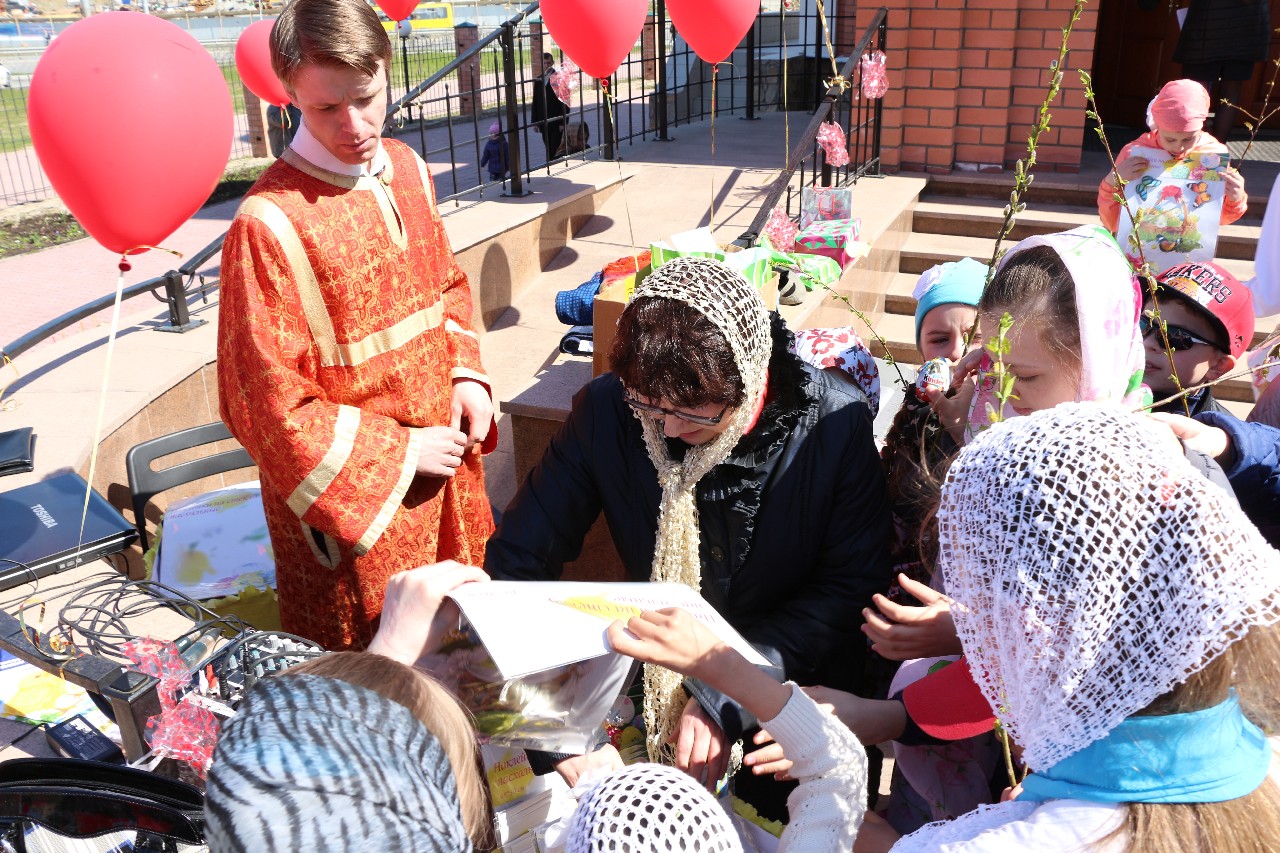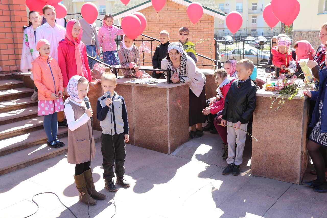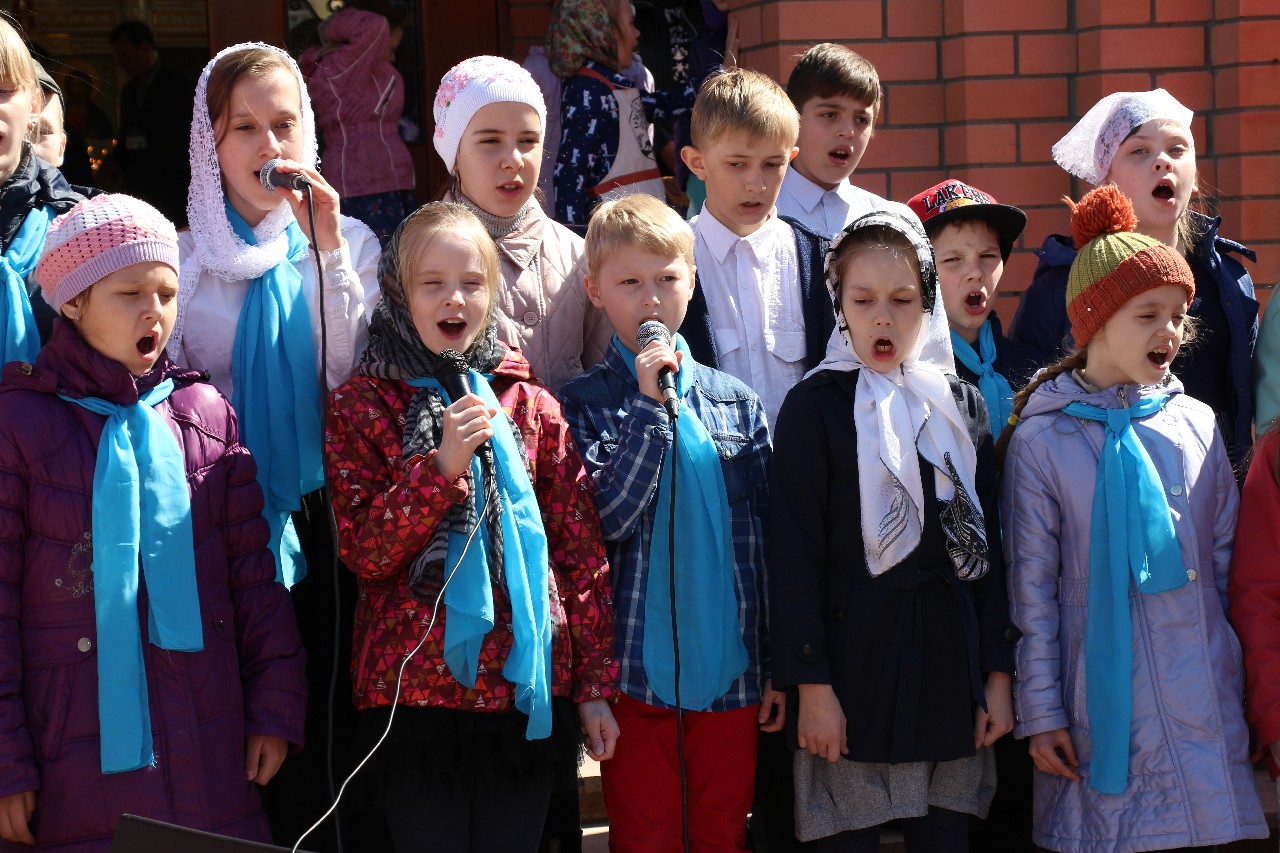 Певчие храма красиво и торжественно пропели главное песнопение — тропарь Пасхи, после чего начался детский концерт. Воспитанники воскресной школы подготовили духовные стихи и песни, в которых славили Воскресшего Христа.