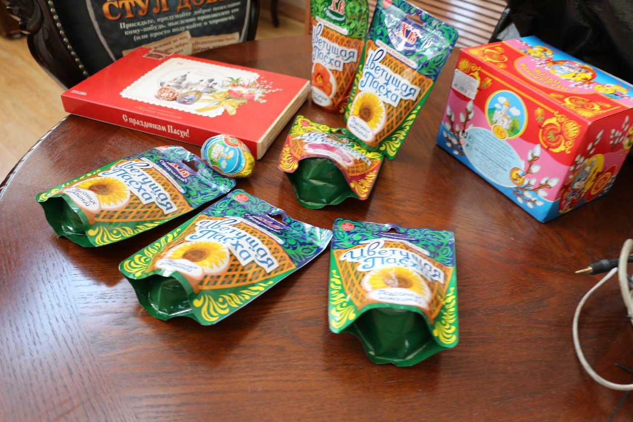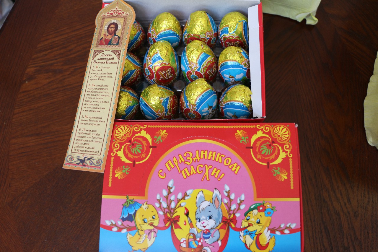 По окончании детского праздника батюшка рассказал о символике пасхальных яиц и каждому воспитаннику вручил шоколадное яйцо и подарки, которые были подготовлены заблаговременно.