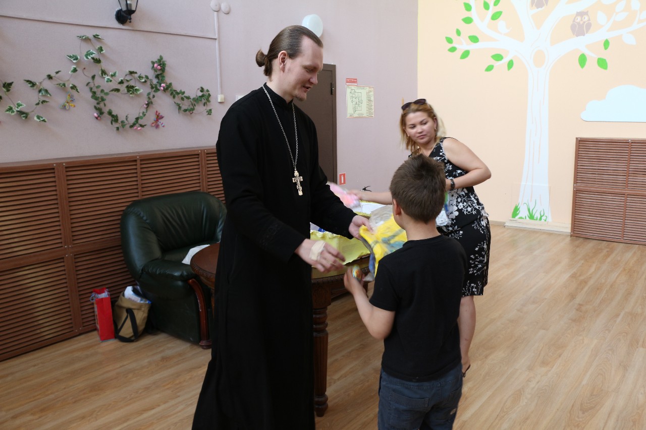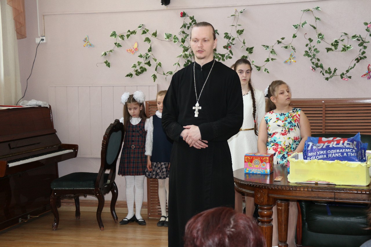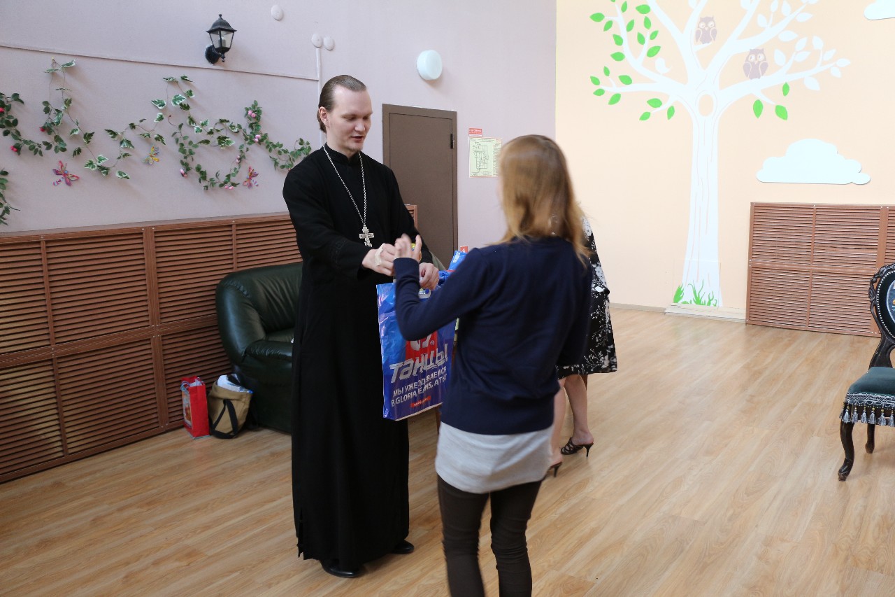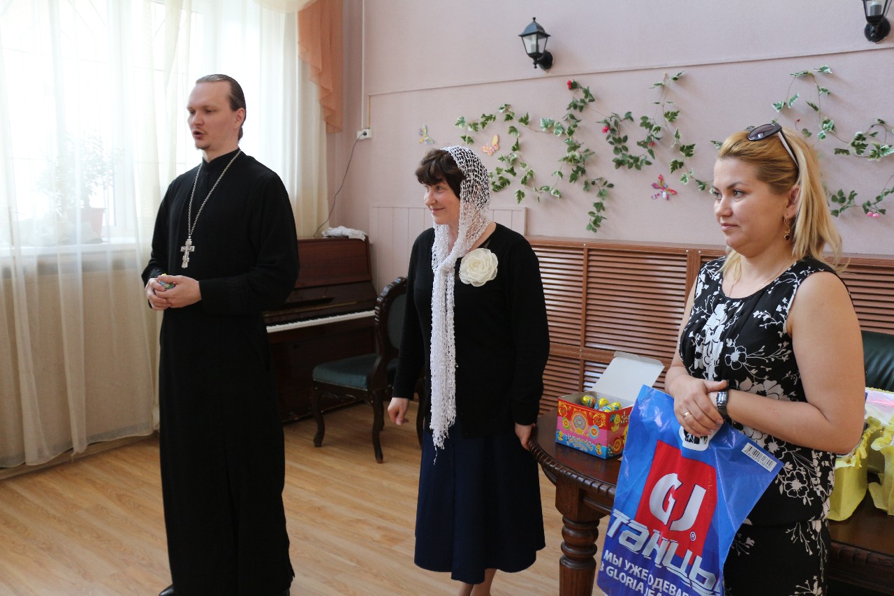 Отец Сергий обратился к педагогам со словами благодарности за нелегкую работу с обездоленными детьми и вручил им пасхальные подарки и иконки с молитвами.