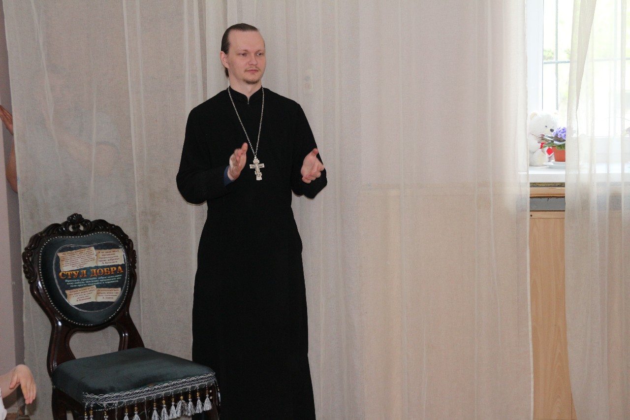 Во вступительном слове батюшка рассказал о значении Праздника Светлого Христова воскресения, а также по-отечески разъяснил, почему нужно стараться жить по Заповедям Божиим, а младшим пребывать в послушании старших.