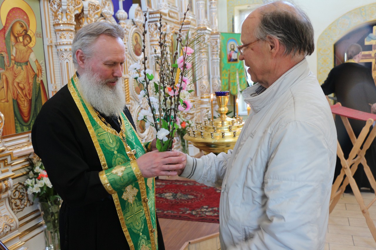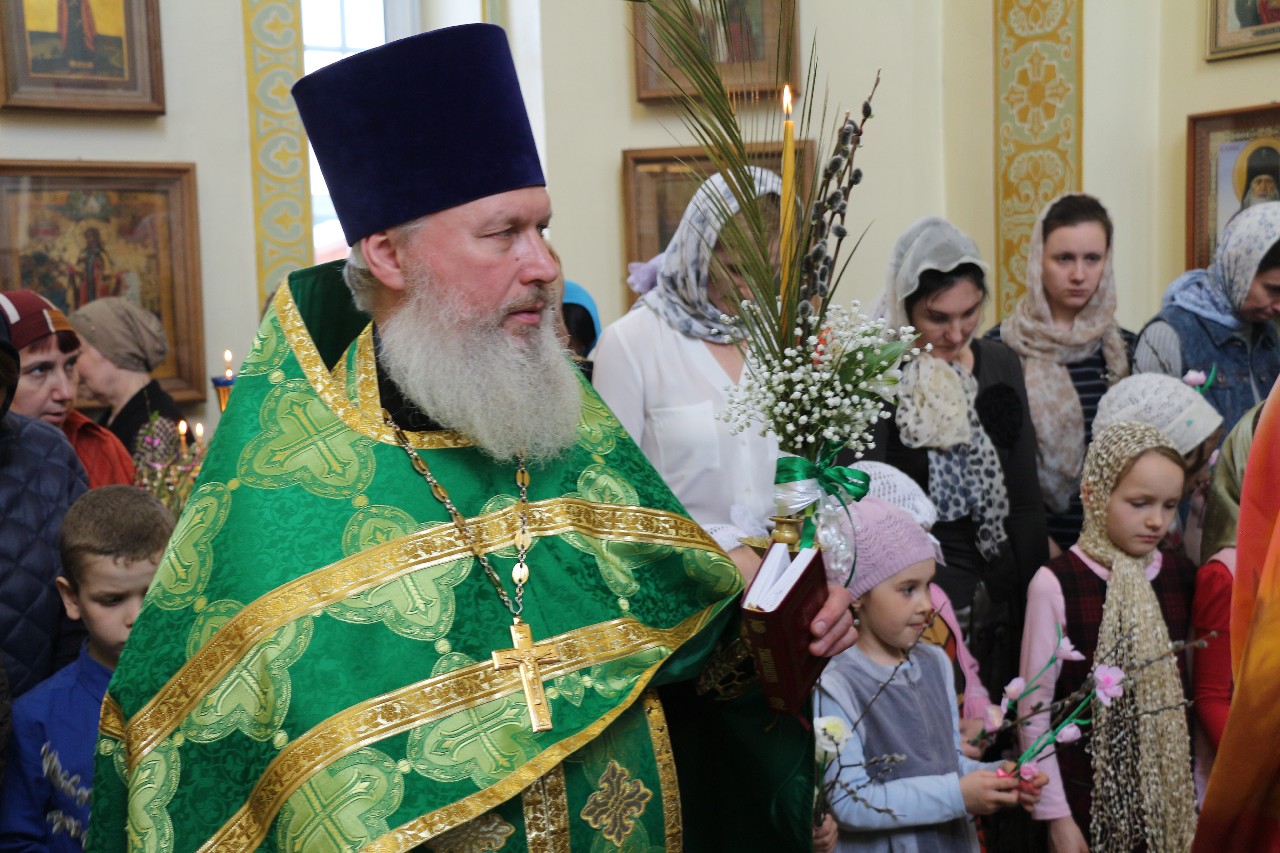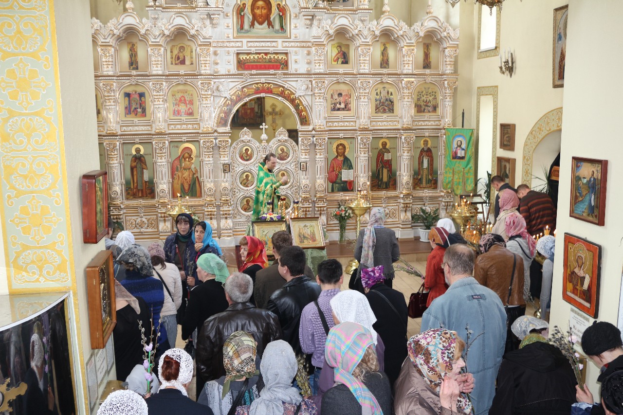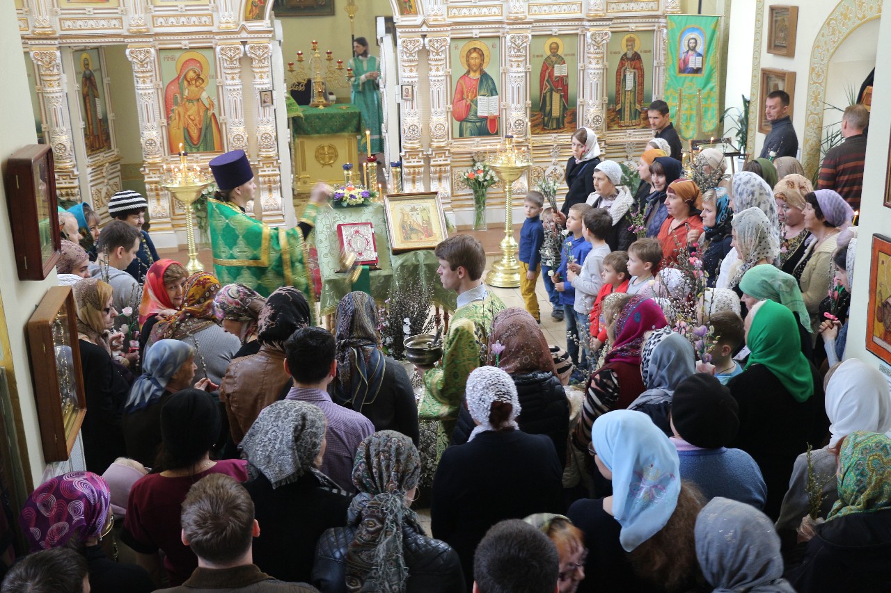 В этот праздничный день пришло множество верующих помолиться и по традиции освятить принесенные вербы.