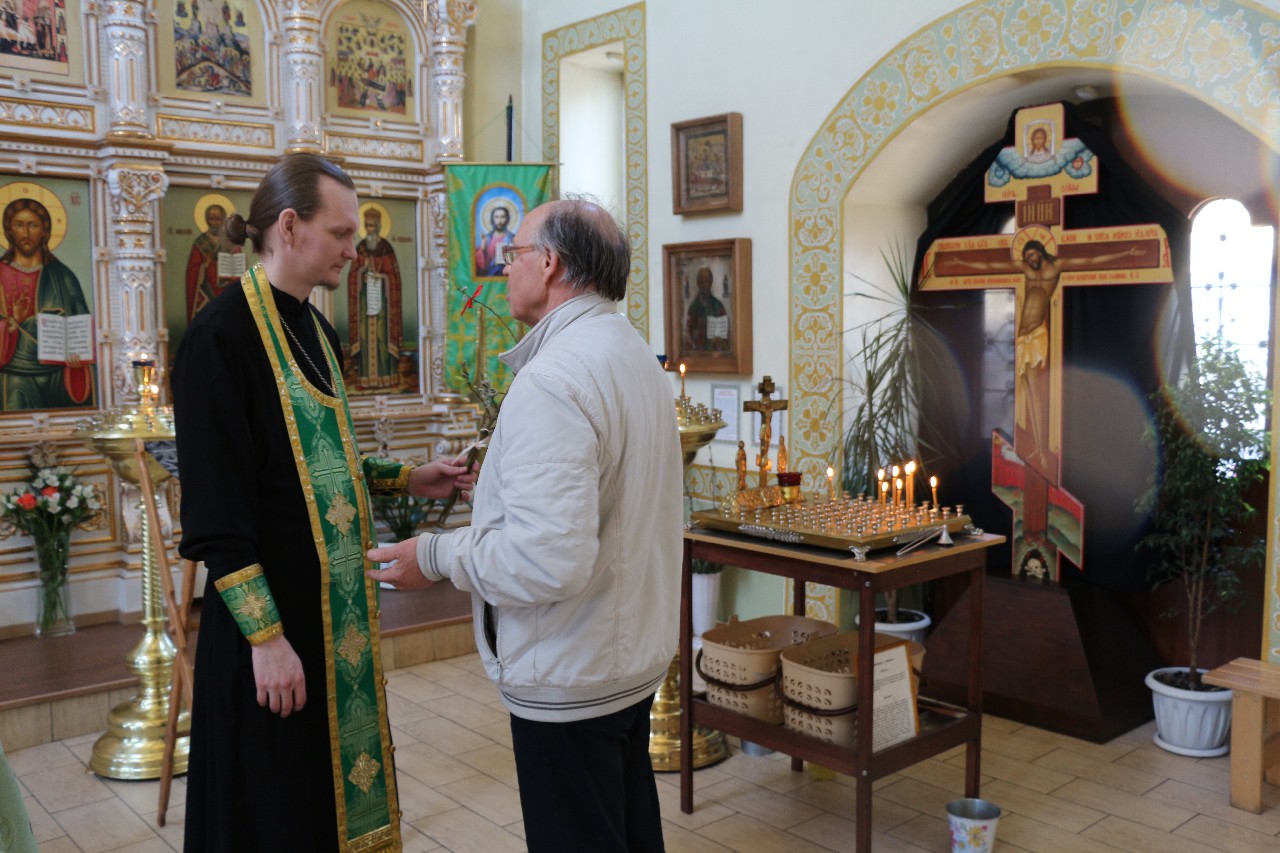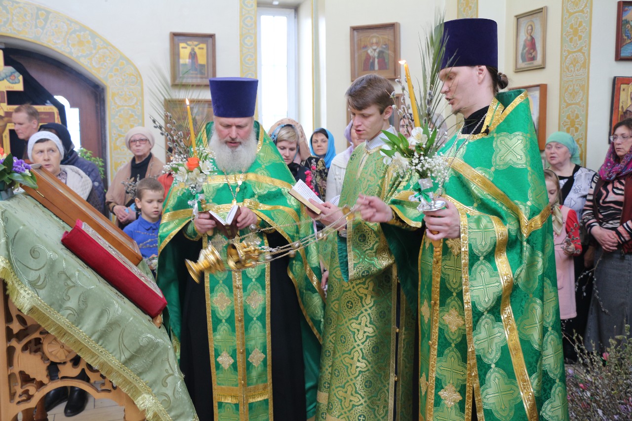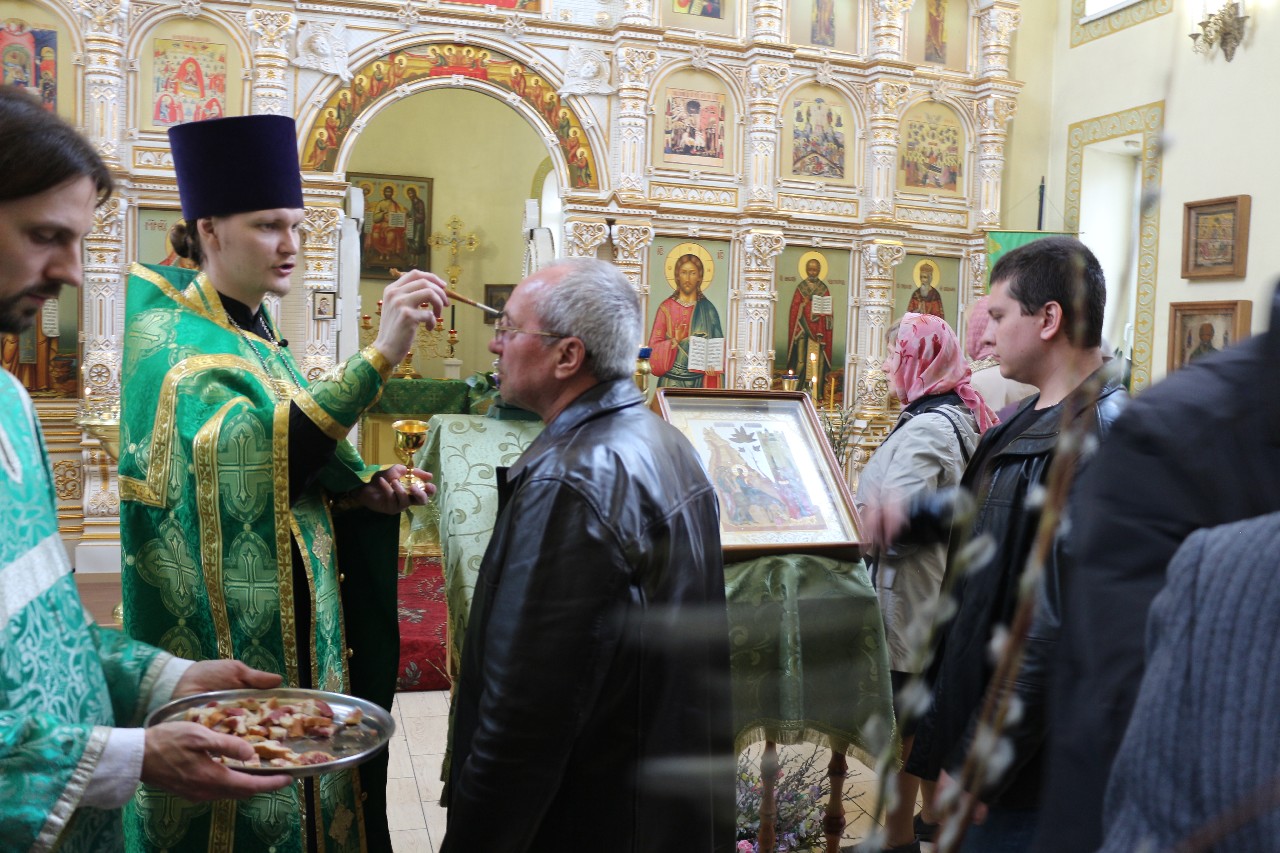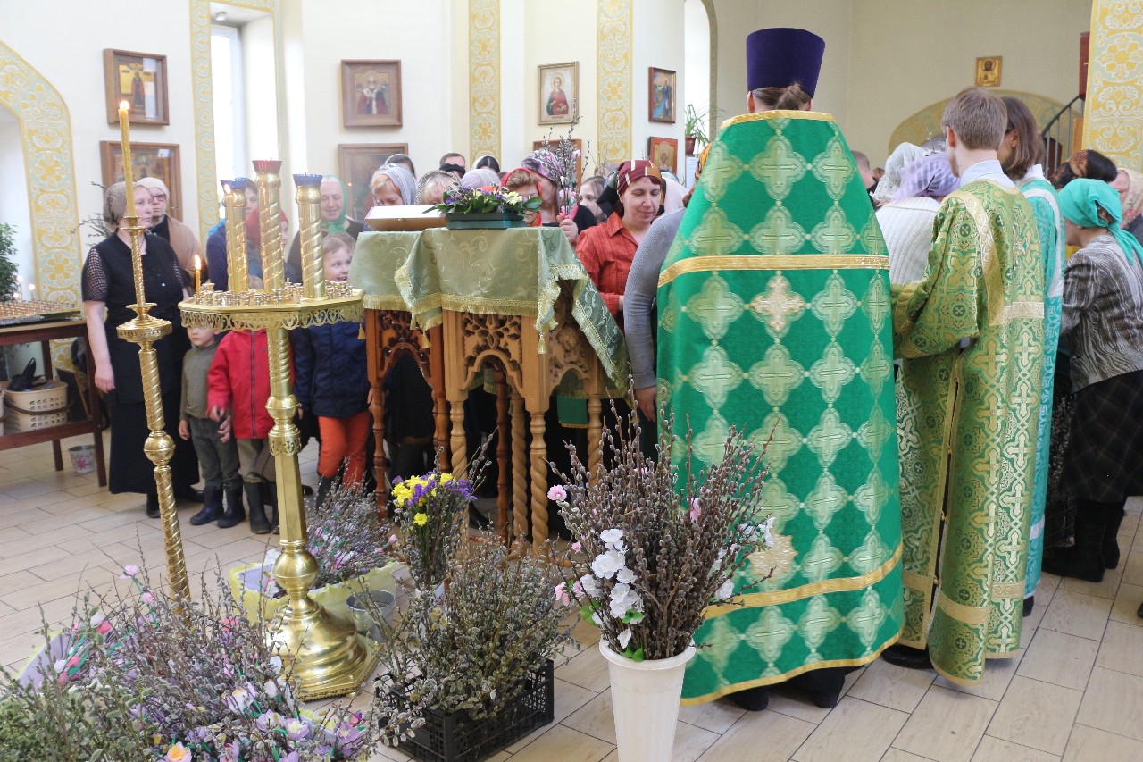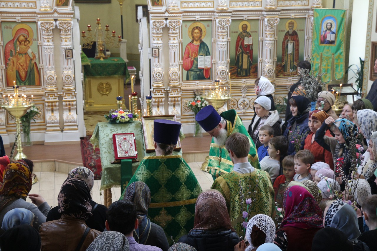 В этот праздничный день пришло множество верующих помолиться и по традиции освятить принесенные вербы.