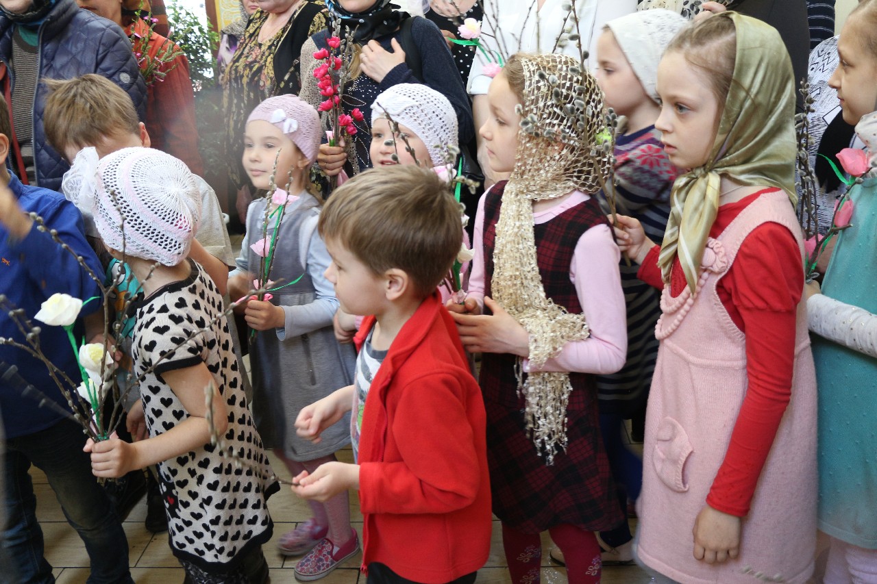 Аромат распустившейся вербы заполнил весь храм, дети с нетерпением ожидали самого радостного момента-освящения вербы, которую сами украшали на занятиях воскресной школы.